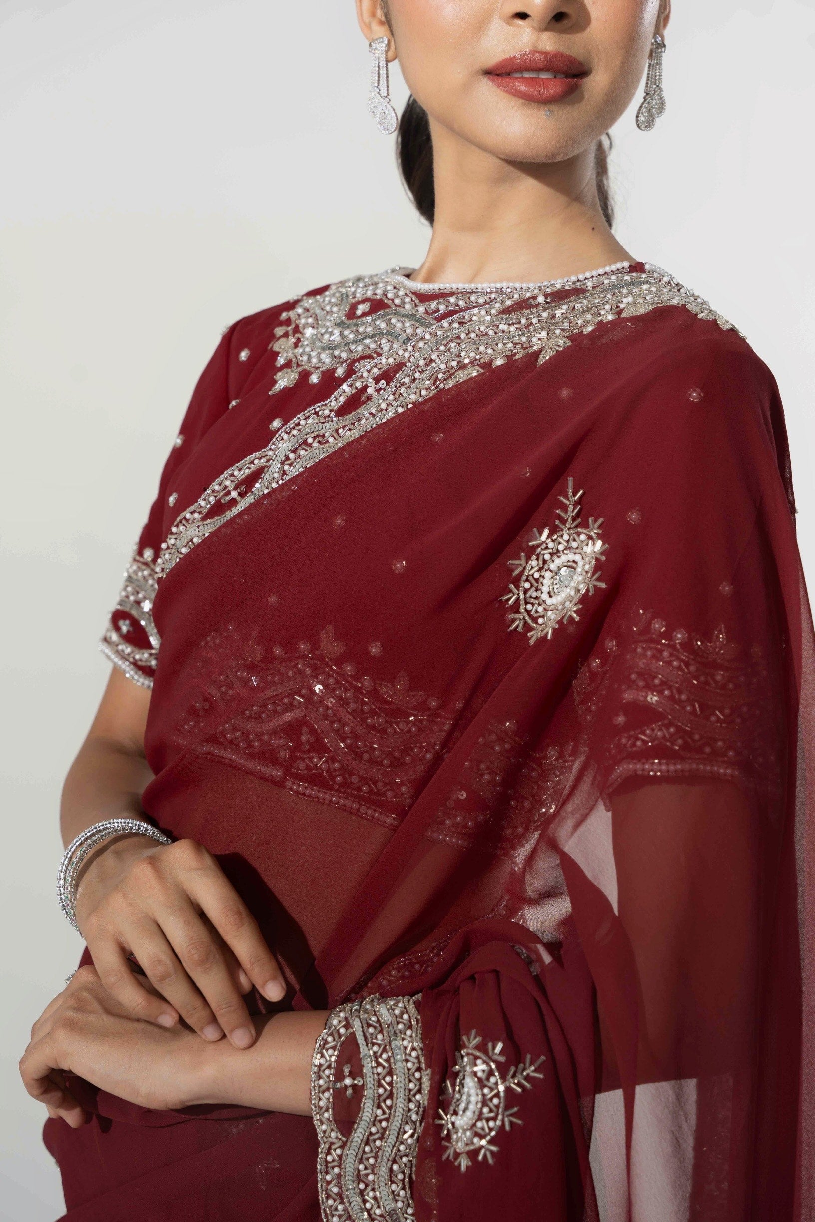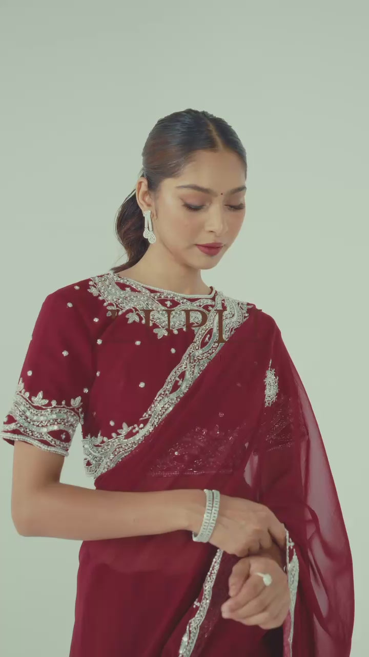 Hangma Maroon Hand Embellished Saree
